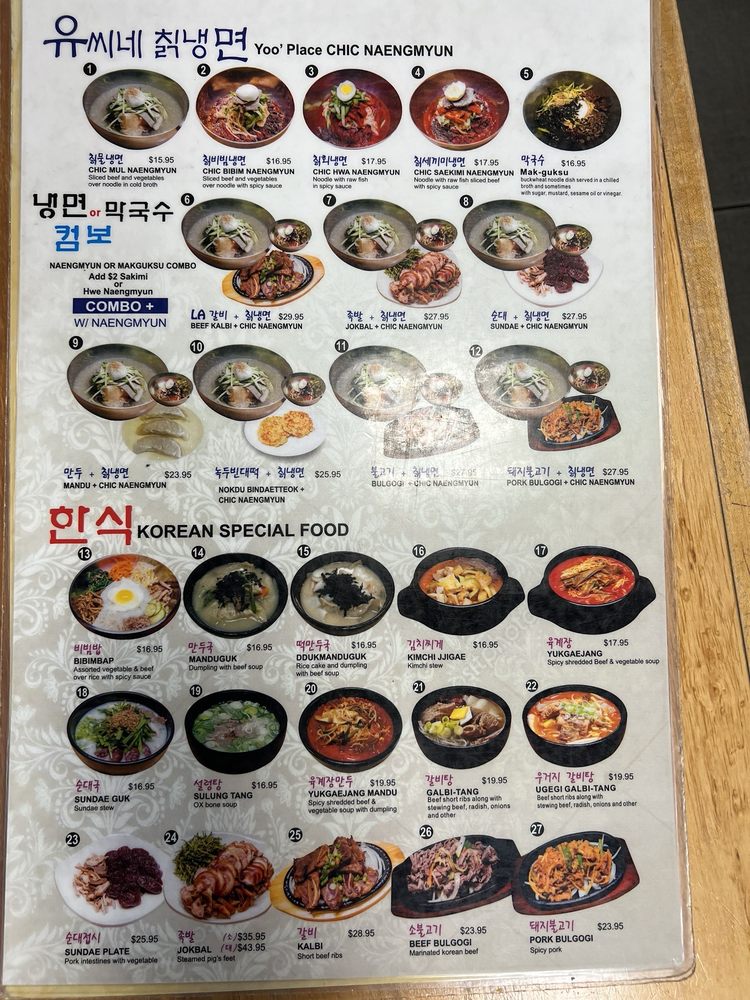 Yoo's Place is a Korean and Chinese noodle restaurant located in Buena Park, CA. Offering a variety of traditional dishes, their menu includes specialities like Bibimbap, Manduguk, and Dolpan options. Customers rave about the high-quality ingredients used in their flavorful dishes, which stand out from typical restaurant fare. The cold noodles, in particular, receive glowing reviews for their authenticity and taste. The restaurant's small size adds to its cozy ambiance, with attentive service even during busy times. With a focus on traditional flavors and a welcoming atmosphere, Yoo's Place is a gem for those craving authentic Korean cuisine.